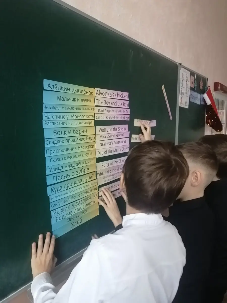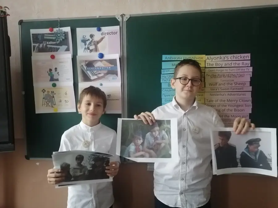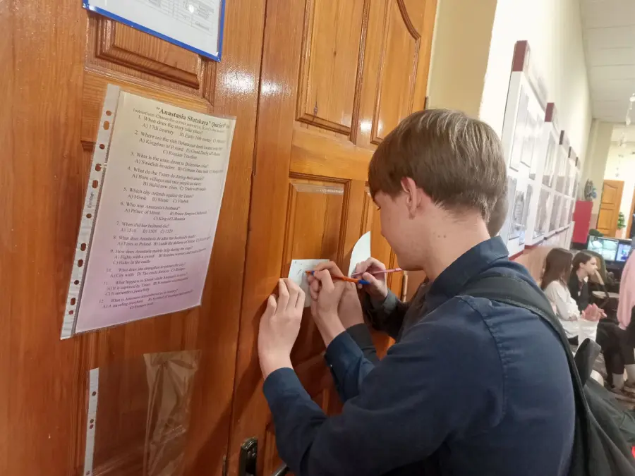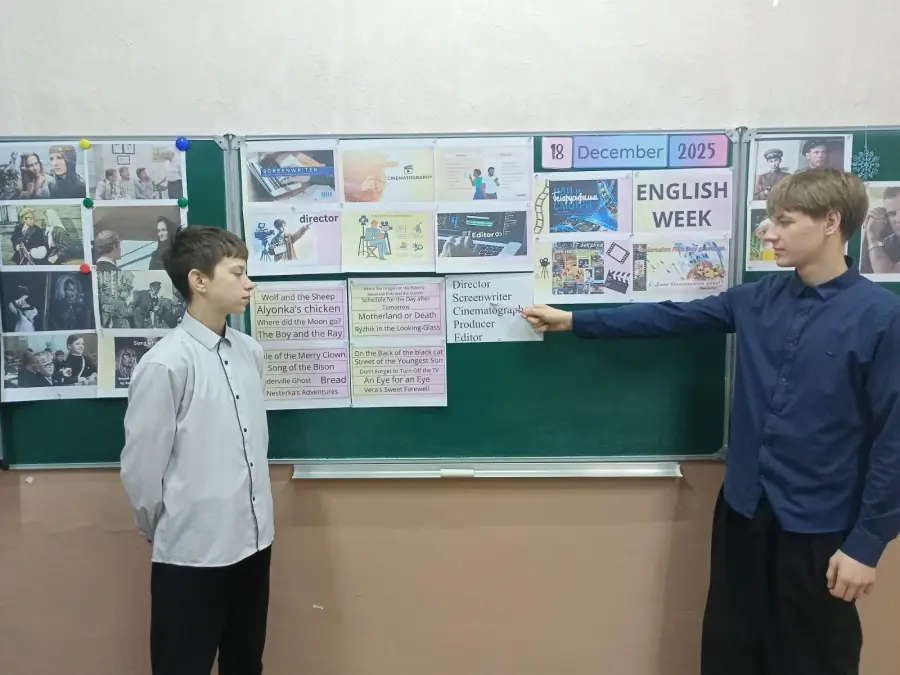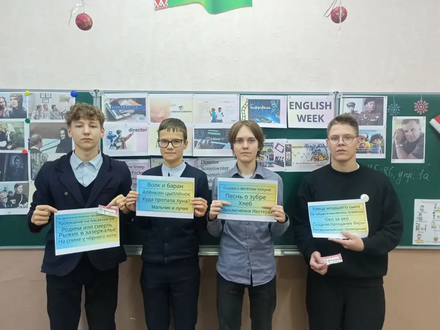 Неделя стартовала с "Opening Ceremony: The Belarusian Film Roll". Школа преобразилась: коридоры и классы украсили яркие постеры с кадрами из белорусских фильмов, флаги и стилизованные киноплёнки. На уроках английского (по 5–10 минут) все играли в "Movie Match-Up": сопоставляли названия фильмов и мультфильмов на русском/белорусском с английскими переводами. Дома ребята собирали факты о белорусском кино — от первого фильма до современных Оскар-претендентов. Атмосфера заряда была создана!