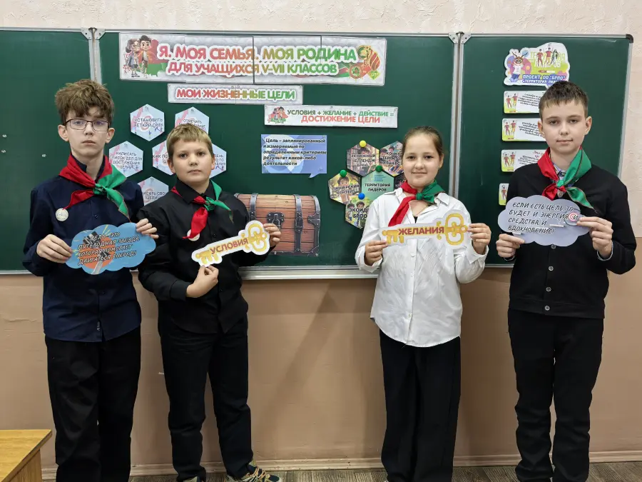 В рамках обучающей программы «Я. Моя семья. Моя Родина» в наших седьмых классах прошёл классный час, посвящённый одной из самых важных тем для становления личности – «Мои жизненные цели». Это было не просто занятие, а настоящий разговор по душам о будущем!