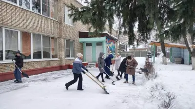 Плечом к плечу, с теплом в сердце и заботой о детях, мы трудились над тем, чтобы очистить от снега дорожки, тротуары, входы в здание и спортивные площадки. Каждый вкладывал свои силы, чтобы путь в школу был безопасным, а перемена — радостной и активной даже в самый снежный день.