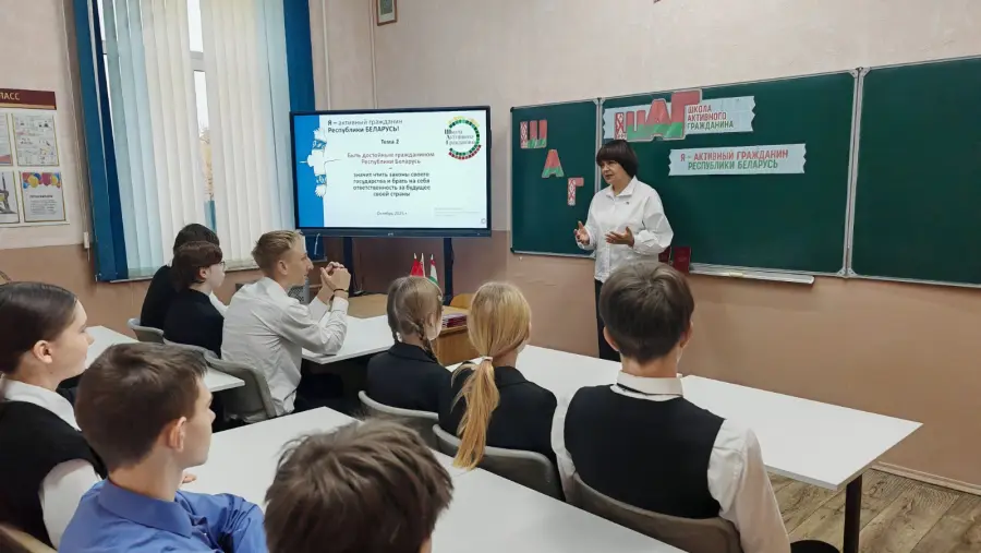 В рамках информационно-образовательного проекта "Школа Активного Гражданина" 23 октября 2025 года в Государственном учреждении образования «Средняя школа № 3 г. Борисова» состоялась диалоговая площадка на тему: "Быть достойным гражданином Республики Беларусь – значит чтить законы своего государства и брать на себя ответственность за будущую судьбу своей страны". Спикером в мероприятии выступил делегат VII Всебелорусского народного собрания Кирик Ирина Валерьевна, руководитель «Гимназии № 3 г. Борисова» и учащиеся 9-11 классов. Ирина Валерьевна рассказала ребятам о полномочиях Всебелорусского народного собрания, как распределена государственная власть в Беларуси и за что награждают государственными наградами и премиями в стране.